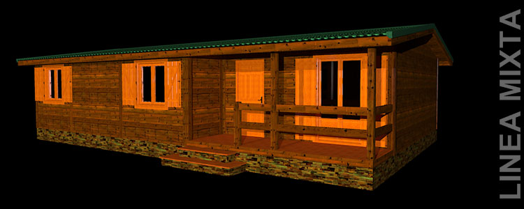 Casa de madera prefabricada distribuida en 105m2, modelo C, compuesta de 5 módulos, acabados de primera calidad y estructura con un nivel de aislamiento térmico y eficiencia energética difícilmente superable, óptimo para todas las estaciones del año. Esta casa de madera prefabricada con estética rustica, permite disfrutar de ella como vivienda habitual o casa de vacaciones. INICIO | CASAS MODERNAS LINEA PRO | CASAS DE MADERA LINEA MIXTA | OFERTAS | CONTACTO @