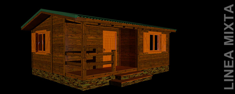 Casa de madera prefabricada distribuida en 34m2, modelo C, compuesta de 2 módulos, acabados de primera calidad y estructura con un nivel de aislamiento térmico y eficiencia energética difícilmente superable, óptimo para todas las estaciones del año. Esta casa prefabricada con estética rustica, permite disfrutar de ella como vivienda habitual o casa de vacaciones. INICIO | CASAS MODERNAS LINEA PRO | CASAS DE MADERA LINEA MIXTA | OFERTAS | CONTACTO @