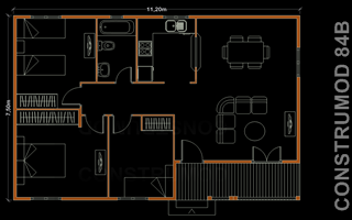 Casa de madera 84 m2 modelo B | CASA DE MADERA 84 m2 modelo B | | | |  Plano casa de madera 84 m2 B | 3 habitaciones 1 salón comedor 1 cocina 1 baño 1 terraza cubierta